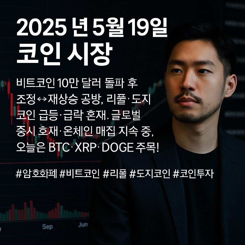 암호화폐 시장이 5월 셋째 주 주말(5월 18일)을 지나며 비트코인(BTC) 가격은 역사적 10만 달러 고지를 넘은 뒤 일시 조정을 거치는 등 변동성이 확대되었습니다. 국내 시장에서는 리플(XRP)을 비롯한 주요 알트코인들의 거래 열기가 뜨거웠고, 해외 시장에서는 기관투자자들의 매수세와 거시경제 훈풍 속에 전반적으로 상승 모멘텀이 유지되었습니다. 이번 포스팅에서는 국내와 해외 암호화폐 시장의 5월 18일 동향을 정리하고, 5월 19일 월요일 시장 전망을 국내외로 나누어 살펴보겠습니다. 아울러 최근 시장에 영향을 준 주요 이슈(ETF, 해킹, 규제 등)와 기술적 분석(RSI, MACD, 이동평균), 온체인 동향(고래 주소, 지표), 그리고 거래소별 거래량 및 가격 비교를 다루고자 합니다. 마지막으로 오늘 주목해야 할 코인과 초보 투자자를 위한 용어 해설, 투자 유의사항도 함께 확인해보세요.