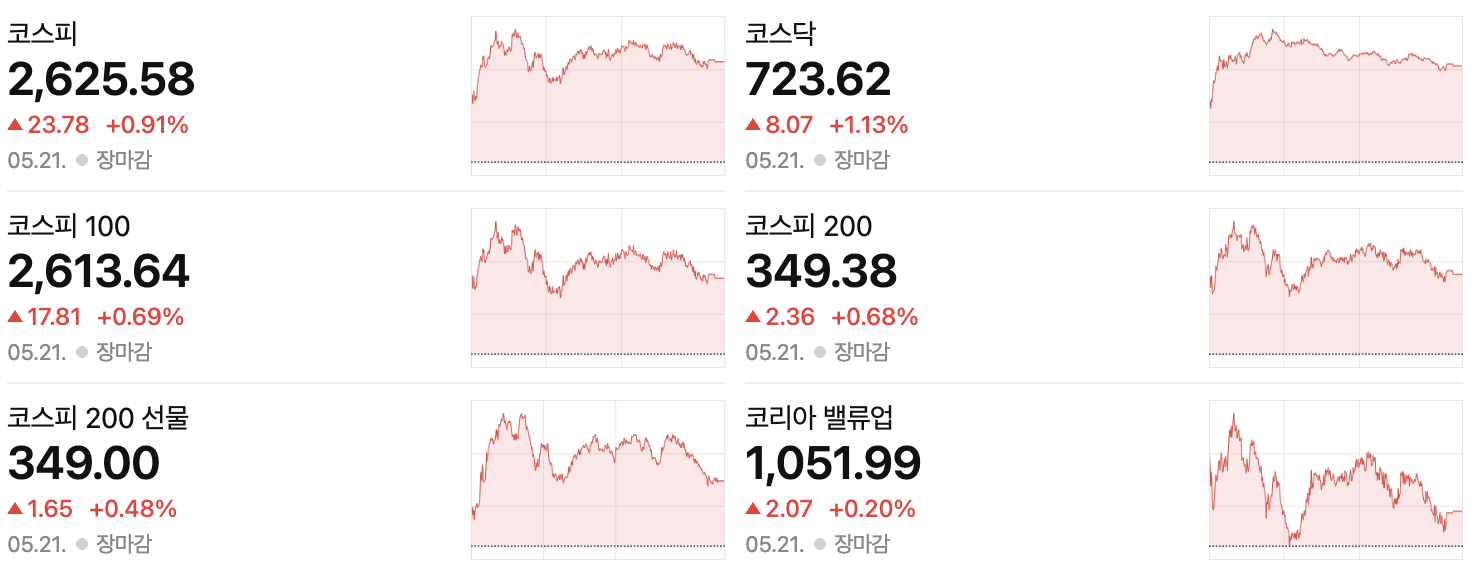 5월 21일 코스피·코스닥 지수 종가 (자료: 한국거래소)